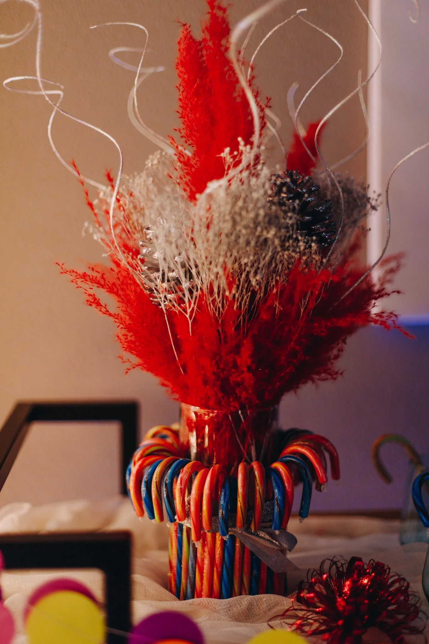 Easy Candy Cane Vase With Arrangement for a Quick Hostess Gift